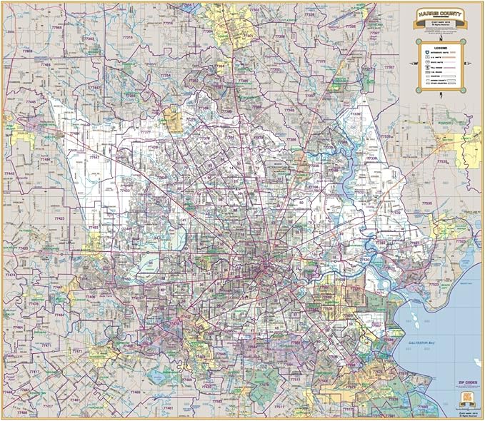 Harris County Major Thoroughfare Wall Map With Zips Codes
