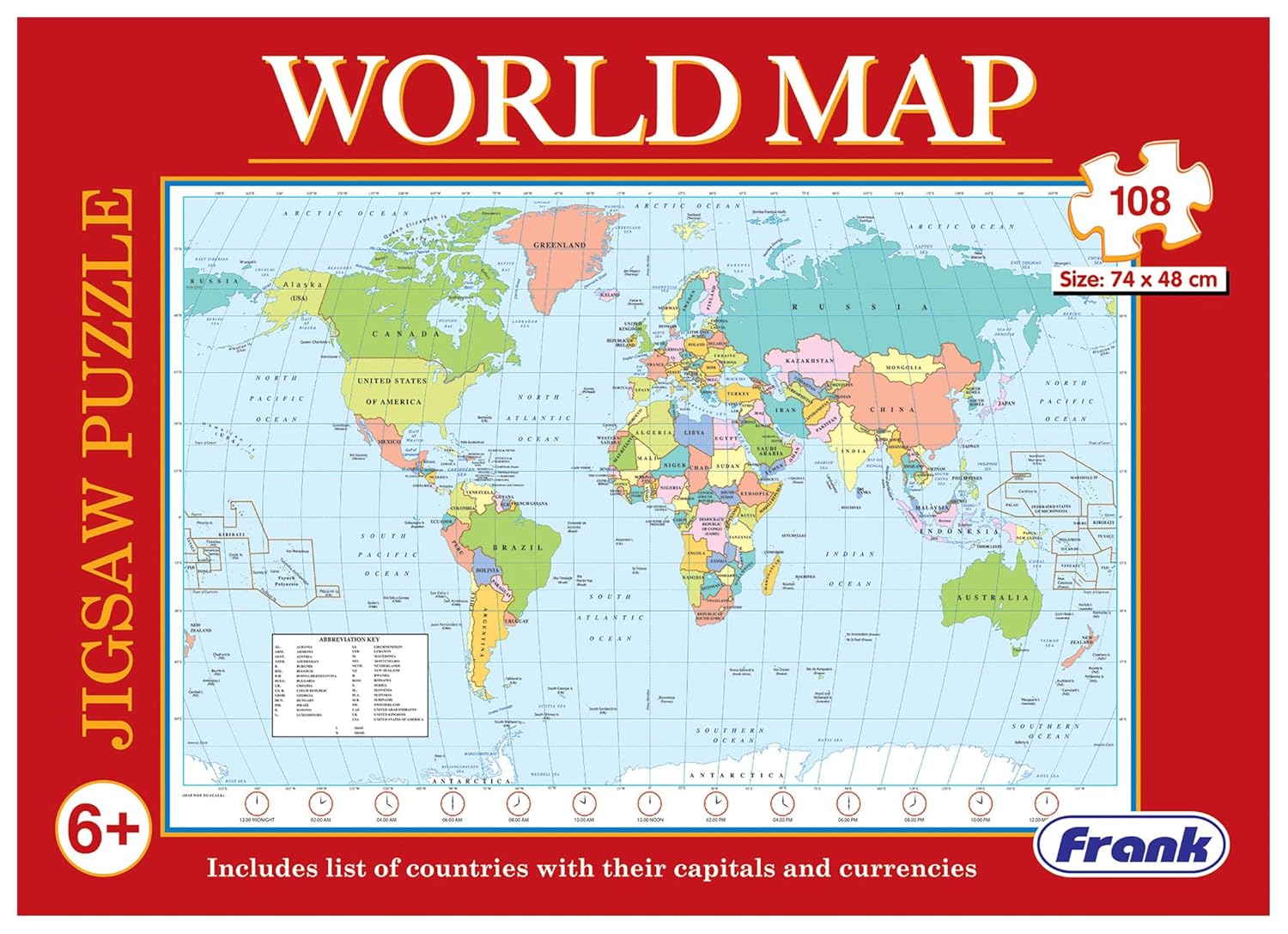 Buy Frank World Map Puzzle 48 X 74 Cm 108 Pieces Early Learner Giant Educational Jigsaw Puzzle Set With List Of Countries Capitals Currencies Ages 6 Above