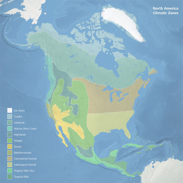 Climatic Map Of North America - Zone A being humid Zone B being dry. North America map of Kppen climate classification. The climate of North America can be broadly divided into eight different climate types.