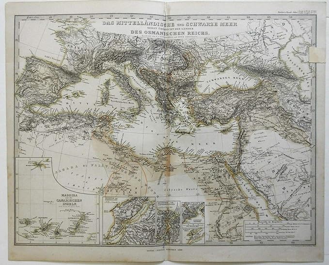Amazon Com Mediterranean Sea Madiera North Africa Italy Spain 1860 Stulpnagel Detailed Map Entertainment Collectibles